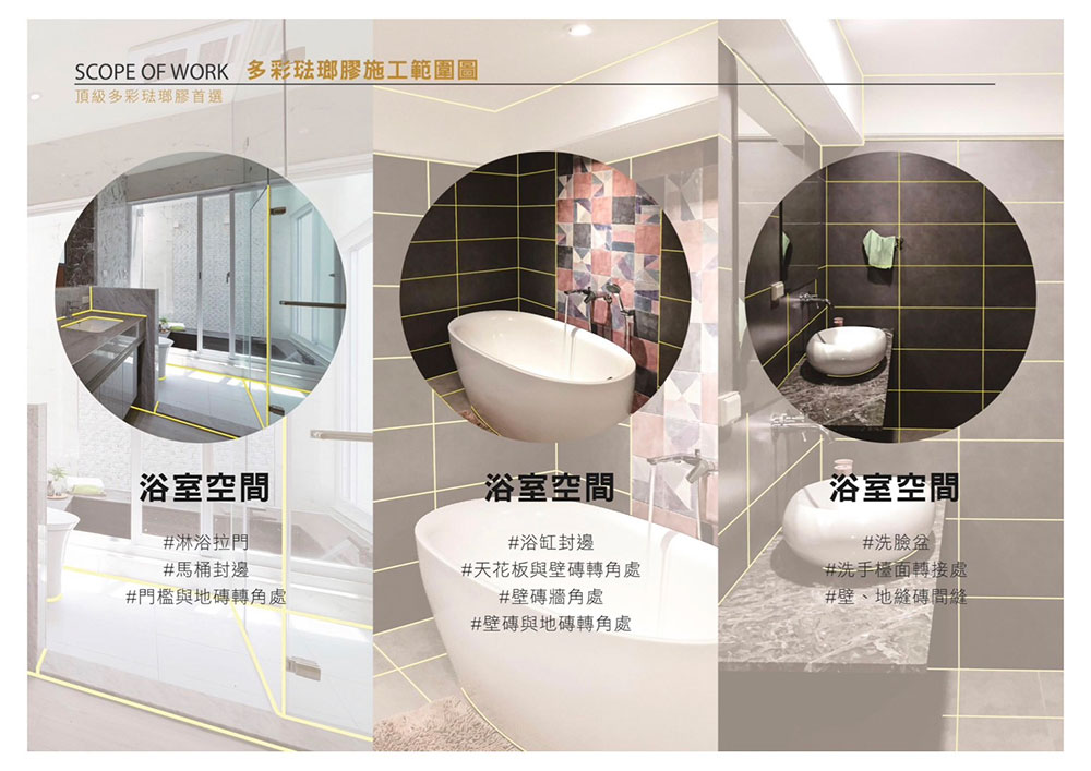許多工班及廠商推薦道康寧(DOWSIL)防水矽利康,實際驗證後比一般矽利康慢發霉,但還是都會發霉。市面上也有銷售除霉凝膠,也可以比照漂白水的使用效果;晟忻選擇使用10年保固防霉矽利康珐鉑多彩琺瑯膠,完全可以杜絕發霉,使用後保持潔白亮麗,而且好清潔也好維護!
