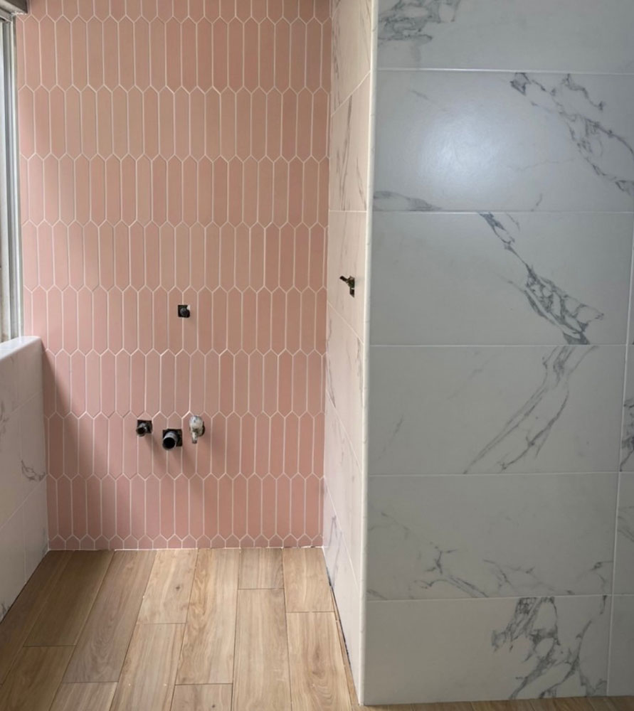 ▼ 工事案例分享,少女粉磁磚怎能讓它長黴菌